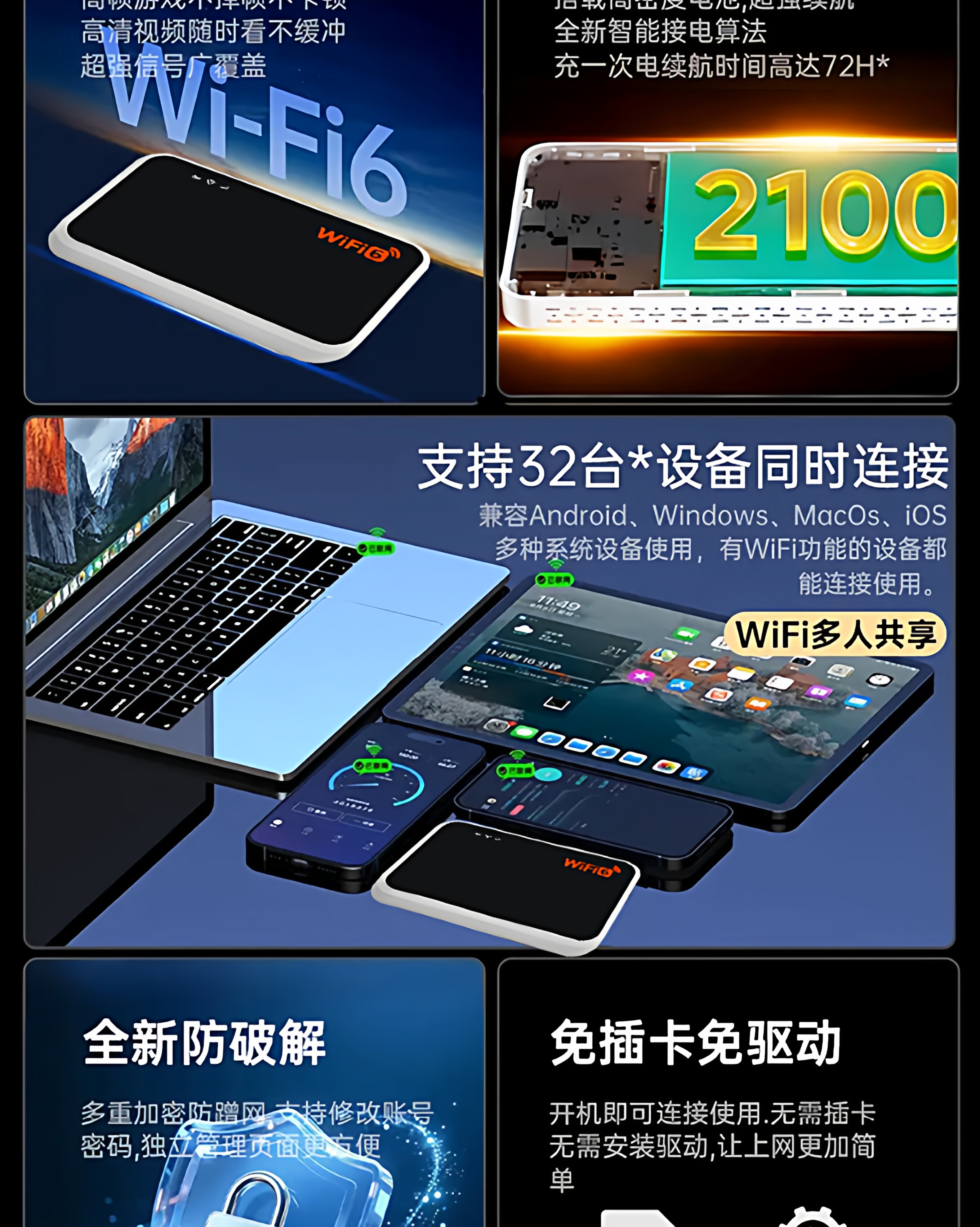 2026 Mới chính thức WiFi6 chính hãng mang theo wifi di động mạng không dây AI chip thông minh
