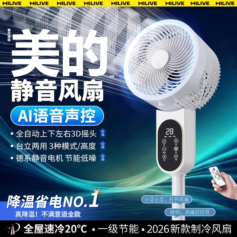 Đức thông minh giọng nói không khí lưu thông quạt điện im lặng phòng ngủ hộ gia đình một lớp hiệu quả năng lượng sàn fan hâm mộ 2026 mới