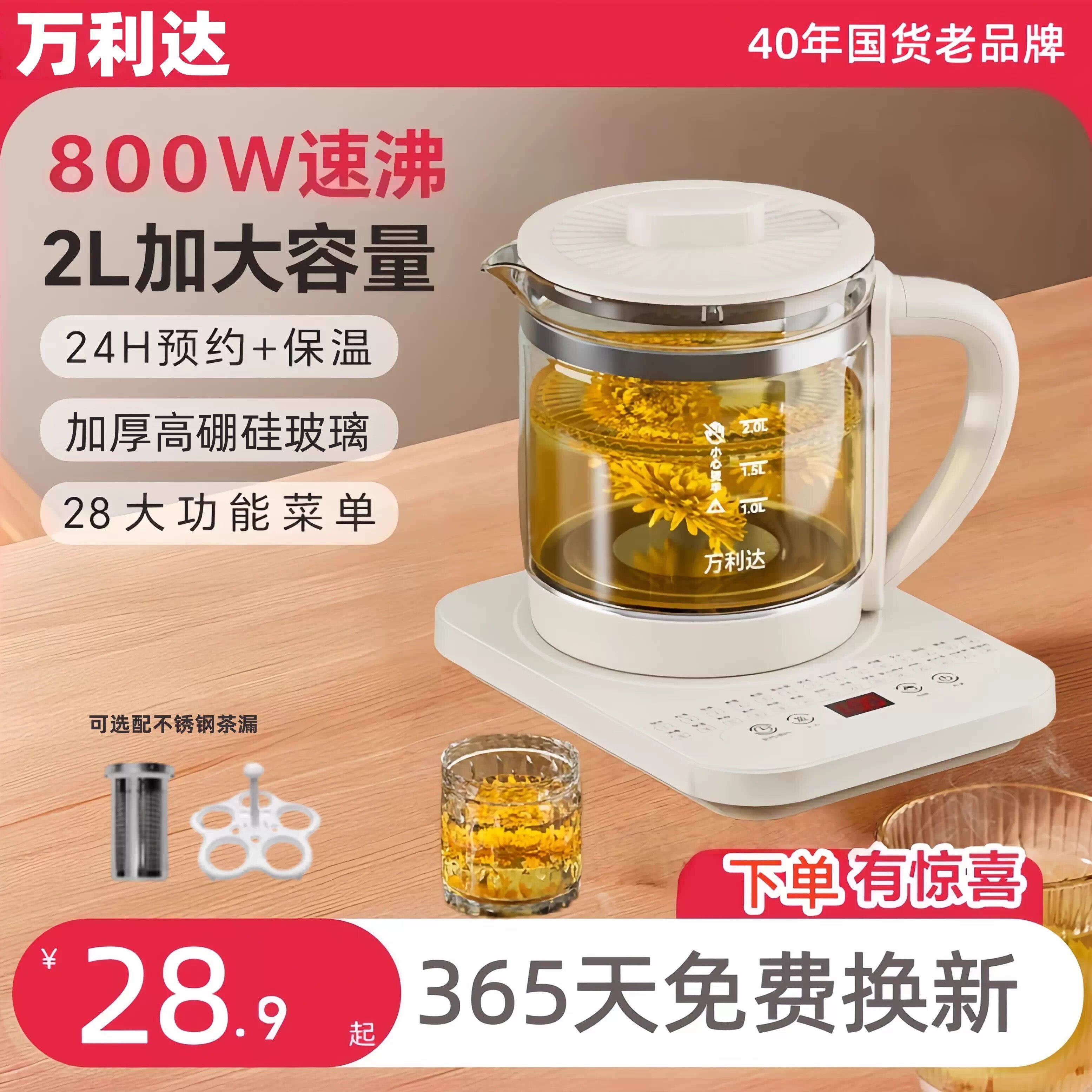 Bình dưỡng sinh Wanlida Đa chức năng Trang chủ Thuốc sắc Ấm pha trà thủy tinh nhỏ 2L Văn phòng cách nhiệt Ấm đun nước