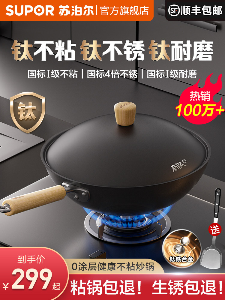 Trăn Titan không dính sắt chảo xào rau chảo gia đình không tráng lò điện từ bếp gas đặc biệt rèn sắt kiểu cũ chảo