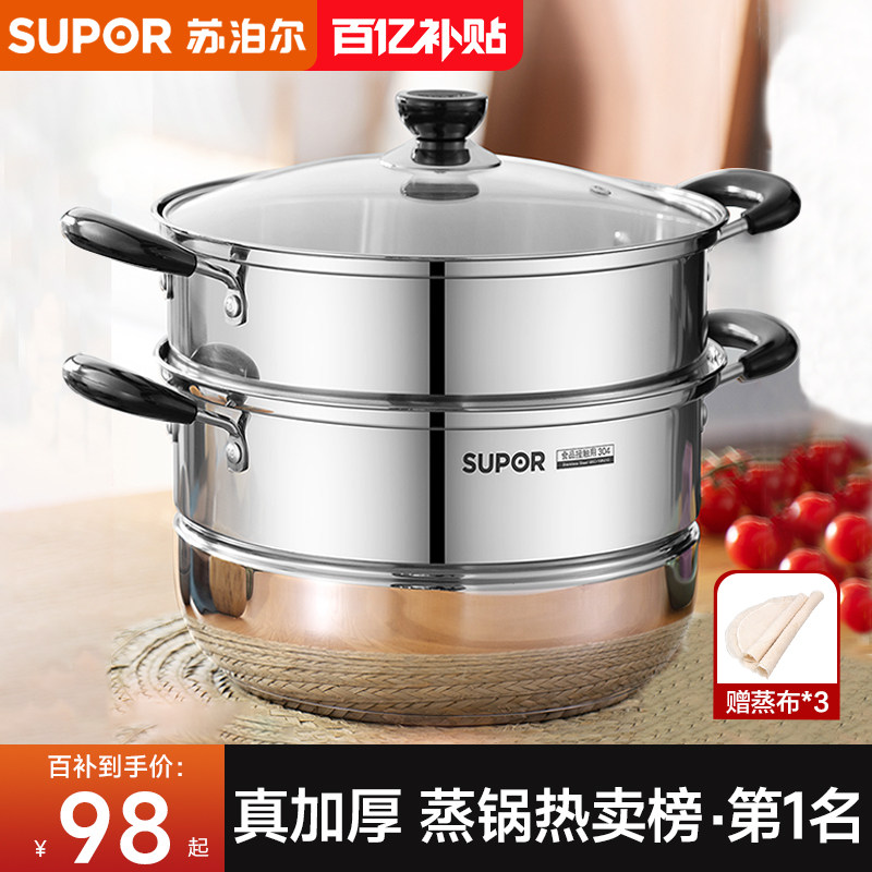 Nhà hơi nước supor 304 steampan hấp cá hấp hấp ba lớp dày bếp ga bếp phổ biến