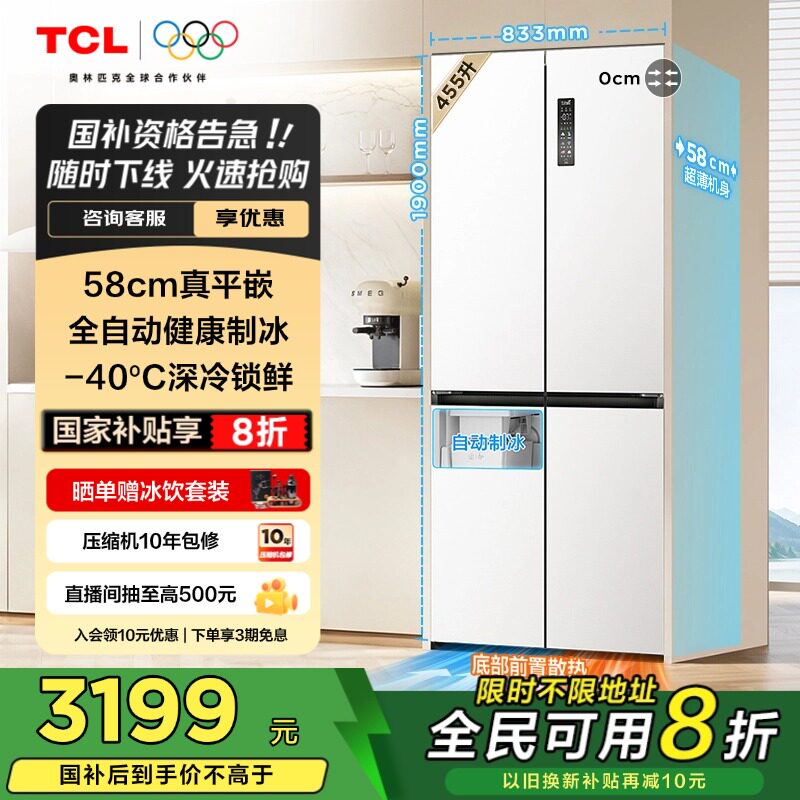 Bánh pudding lạnh TCL crossovers 455 lít 58cm cực mỏng tủ lạnh tự động đóng băng cho trợ cấp mới