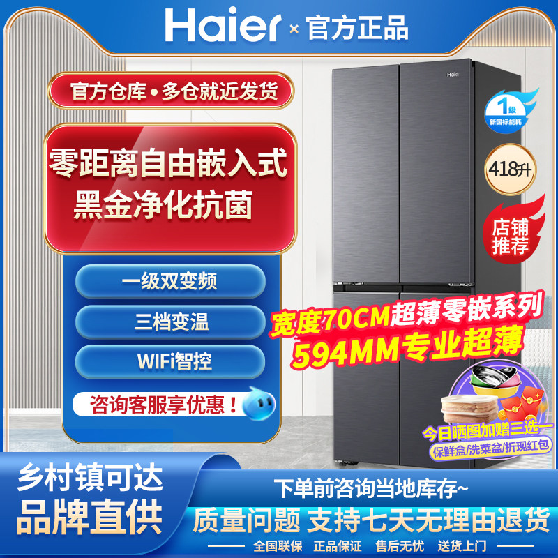 Haier 418L Cross Double Open 𫔭Off Zero Embedded Tủ lạnh Trang chủ Làm mát bằng không khí Frostless Lớp 1 Hiệu quả năng lượng siêu mỏng Double Inverter