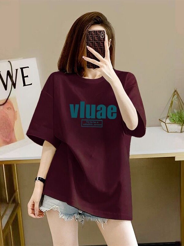 Mùa hè năm 2025 các chữ cái hàn quốc mới in áo sơ mi ngắn tay áo cỡ lớn của phụ nữ mặc áo sơ mi mỏng và dài