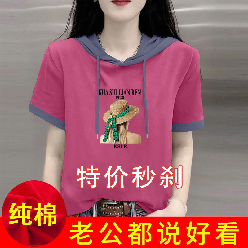 Áo thun ngắn tay màu trắng nữ cotton 2026 mới bùng nổ thiết kế rộng rãi mùa hè