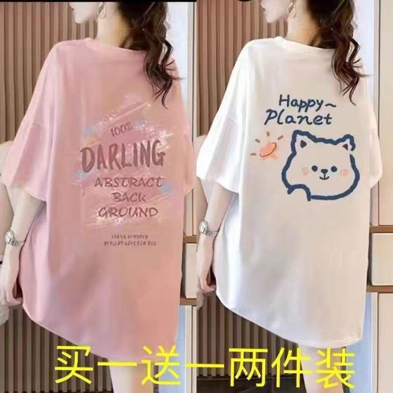 Áo thun ngắn tay cho phụ nữ mùa hè mẫu mới cộng với kích thước của phụ nữ Hàn Quốc rộng thùng thình vừa dài ins thủy triều đơn giản trăm phù hợp với một nửa tay áo