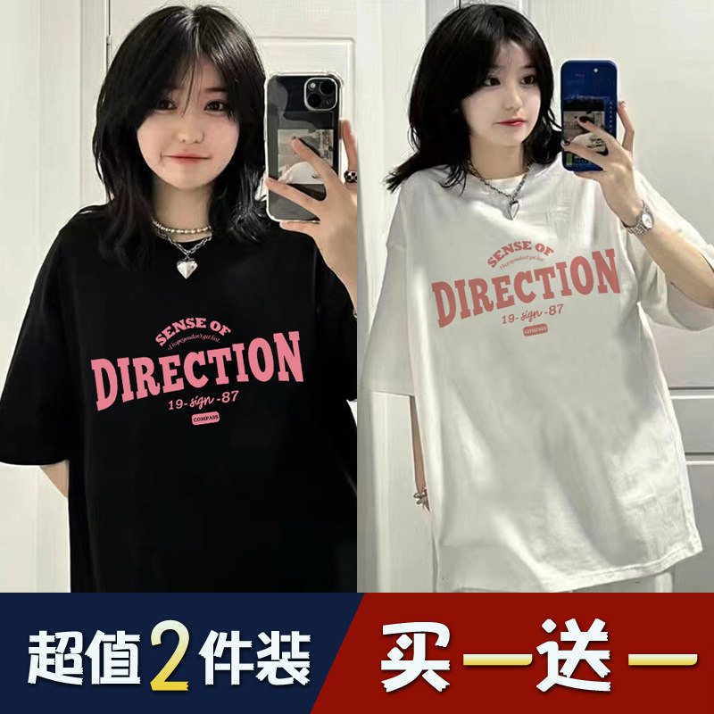 Bông đen ngắn tay áo thun nữ 2025 mùa hè mới bùng nổ thiết kế cảm giác nhỏ phong cách Mỹ rộng rãi nửa tay áo thun
