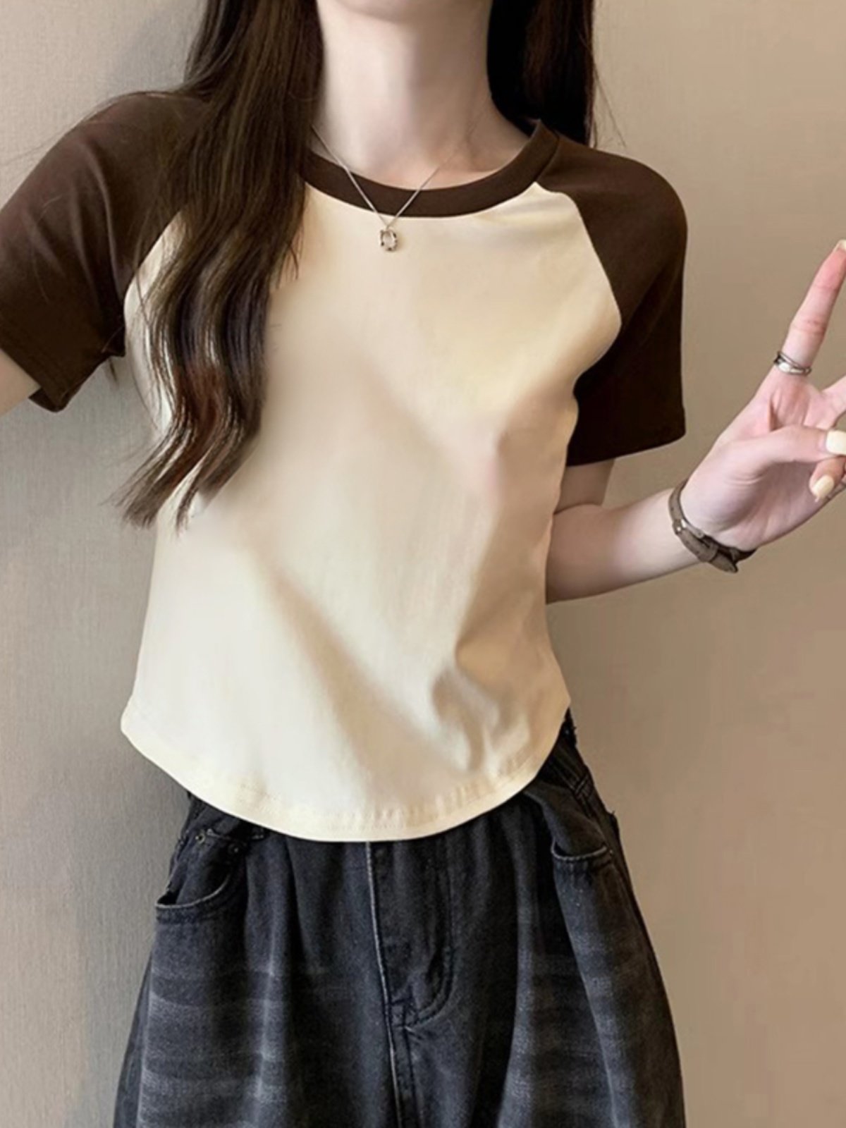 V dẫn cái áo thun cộc tay phụ nữ vào năm 2023 mùa hè bằng màu trắng mới gửi thư giãn thể hiện đại dương ChunMian gầy bê-rít-sin chiếc áo thô t siêu nhỏ