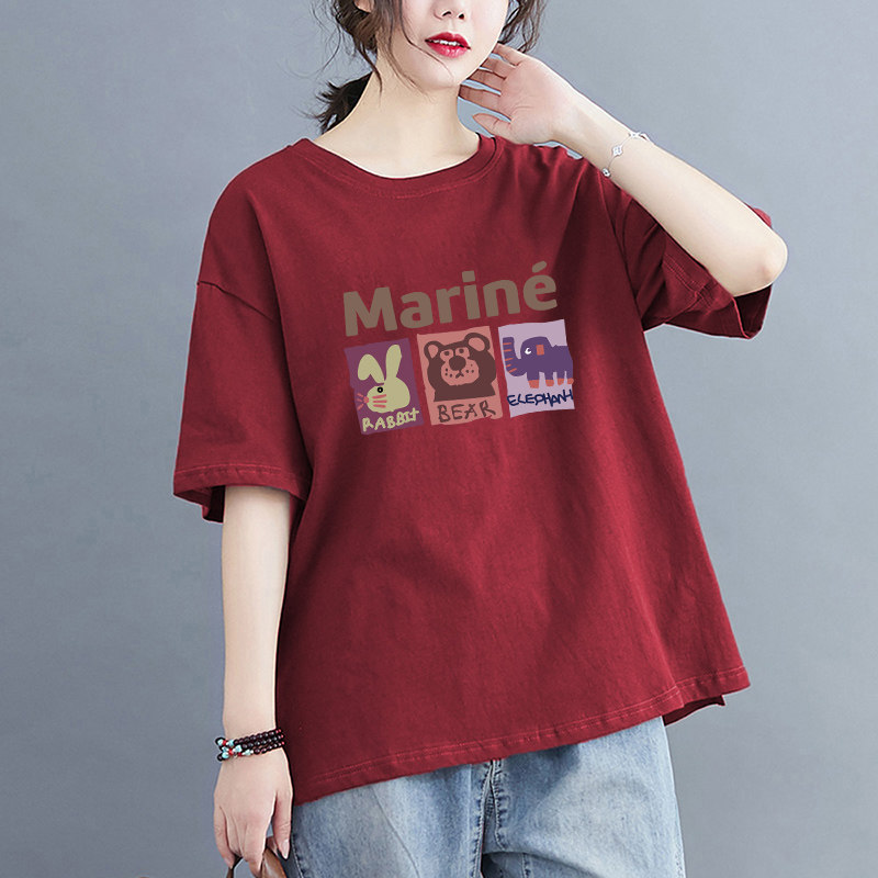 Năm 2025 màu trắng bông với nhiều chữ cái in áo sơ mi tay ngắn, nữ mùa hè rộng rãi thời trang hàn quốc áo khoác cỡ lớn