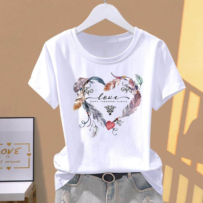 Người phụ nữ nước ngoài cổ áo mới mùa hè in tình yêu dễ thương thư giãn hàn quốc mỏng ins thời trang áo sơ mi tay ngắn
