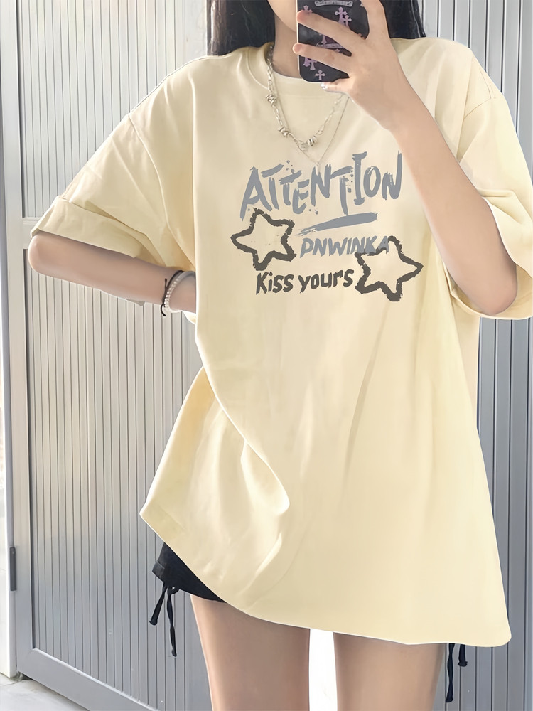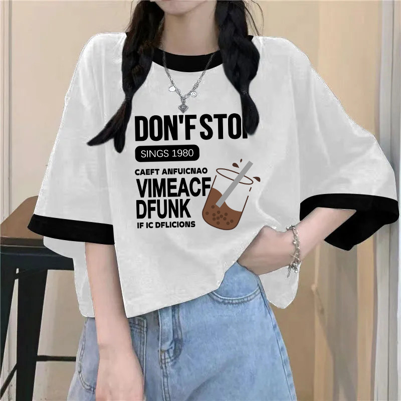 Mùa hè nặng ký bông táo hoa quả in áo thun ngắn tay thiếu nữ trẻ trung học cơ sở học sinh trung học phổ thông rộng thùng thình nửa tay áo