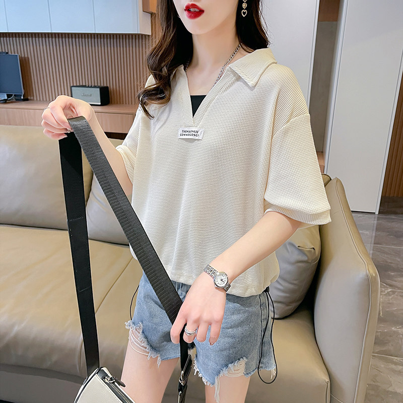 polo cổ giả hai áo thun ngắn tay cho phụ nữ mùa hè 2025 phong cách mới lỏng lẻo Hàn Quốc 100 phù hợp với người đàn ông nhỏ