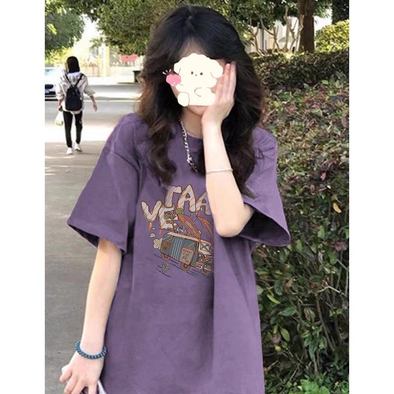 Bông chính xác vai màu tím ngắn tay t-shirt cho phụ nữ mùa hè thiết kế cảm giác nhỏ oversize nửa tay áo T-shirt Top