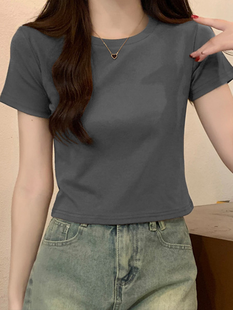 Hellonana màu đen vòng cổ cổ áo ngắn tay áo ngắn tay áo ngắn mùa hè ngắn tay áo
