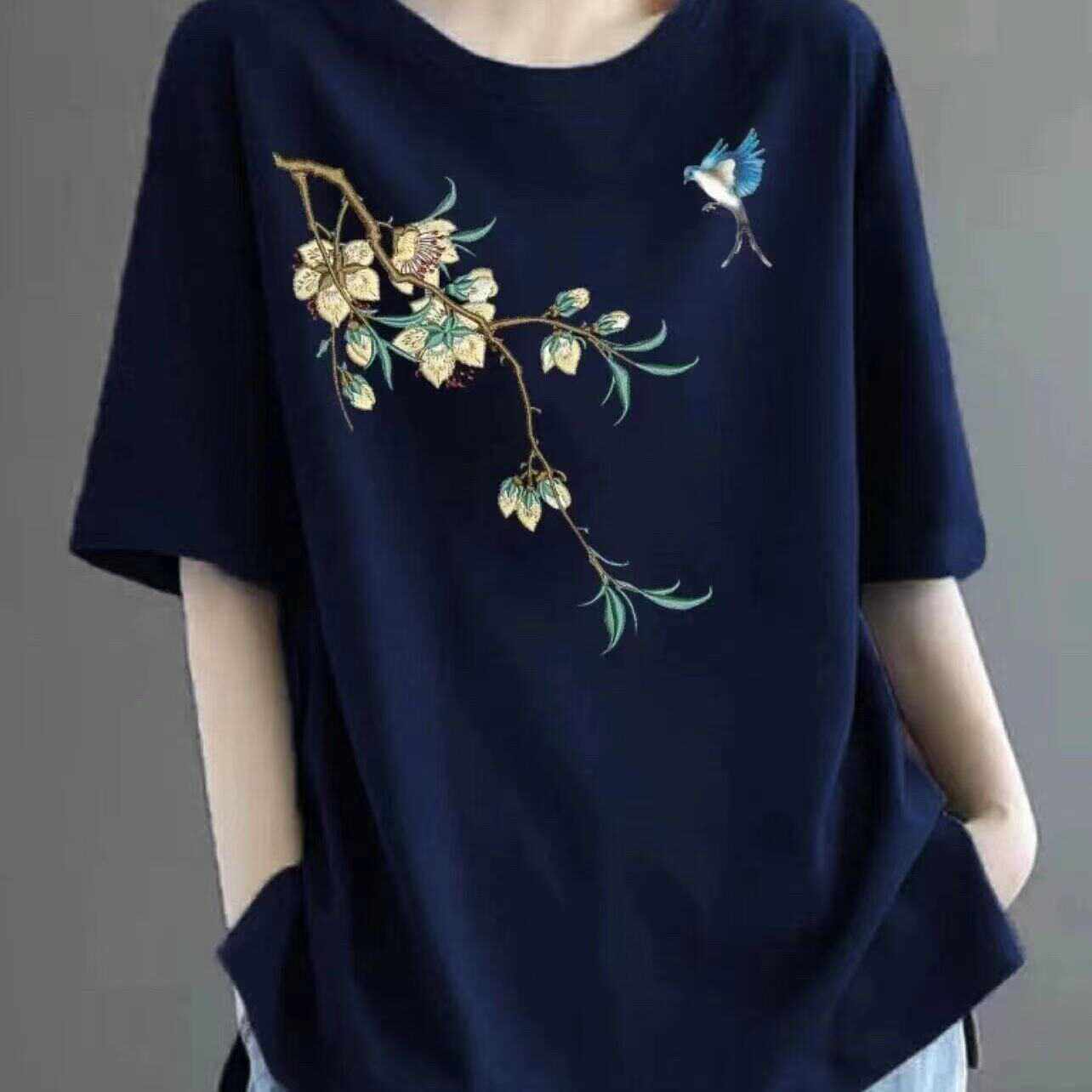 Tất cả bông ngắn tay t-shirt nữ 2024 mới mùa hè trung niên mẹ ăn mặc áo sơ mi thời trang giảm tuổi lỏng lẻo giải trí hàng đầu