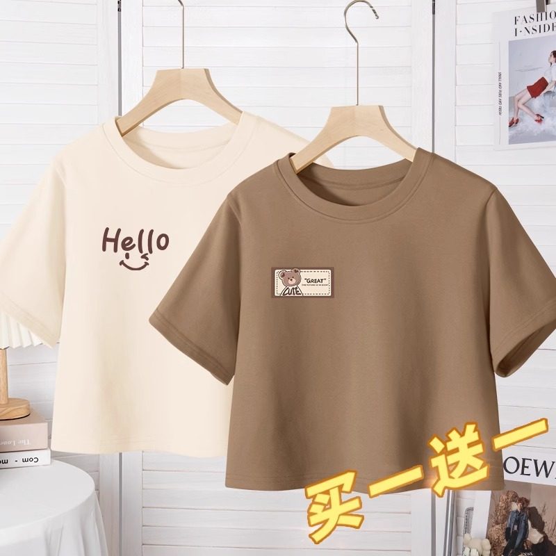 Áo thun ngắn tay nữ 2024 phong cách mới mùa hè sinh viên ngắn hàng đầu mùa hè quần áo mùa hè nhỏ cô gái mùa hè quần áo lỏng lẻo