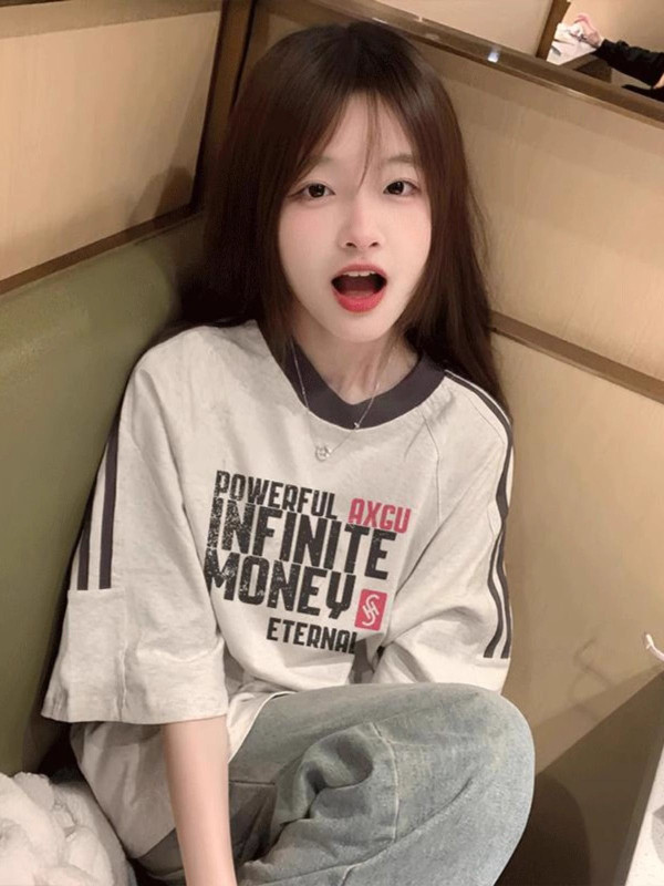 Mùa hè mới trường học sinh áo sơ mi tay ngắn cổ rộng năm phút và một nửa tay áo lạnh hàn quốc xu hướng T-shirt