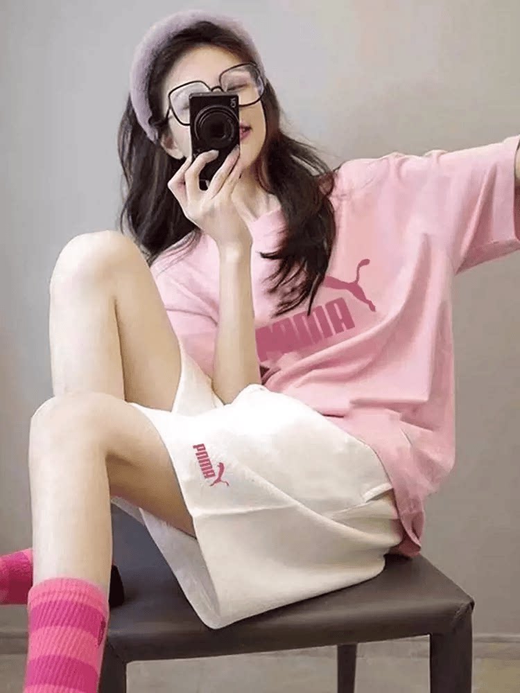 Thể thao giải trí phù hợp với quần short ngắn tay nữ trong mùa hè thời trang rộng lớn kích thước nhỏ sinh viên hai mảnh của thời trang