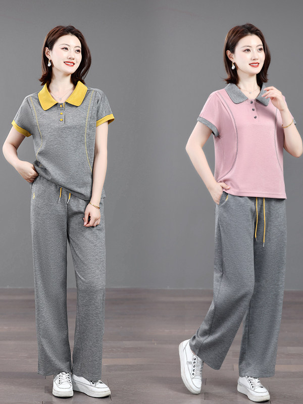 Mùa hè mẹ giải trí tập thể dục năm 2025 mới mùa hè người cao tuổi áo thun ngắn tay mùa hè mỏng hai mảnh
