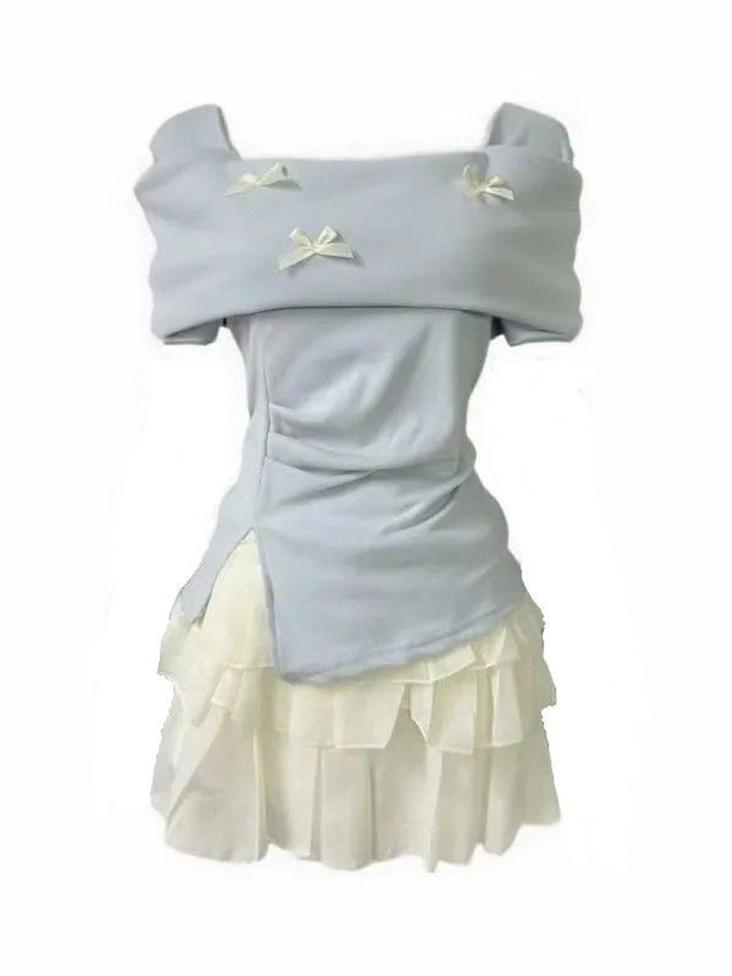 Mùa hè tuyệt đẹp của một bộ áo khoác xanh vai ngắn tay áo với một bộ váy dễ thương ngọt ngào