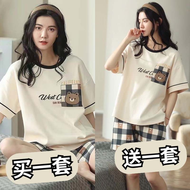 Mua một tặng một bông ngắn tay phù hợp với phụ nữ mùa hè thời trang phong cách phương Tây quần short hai mảnh phù hợp với kích thước cộng với đồ ngủ
