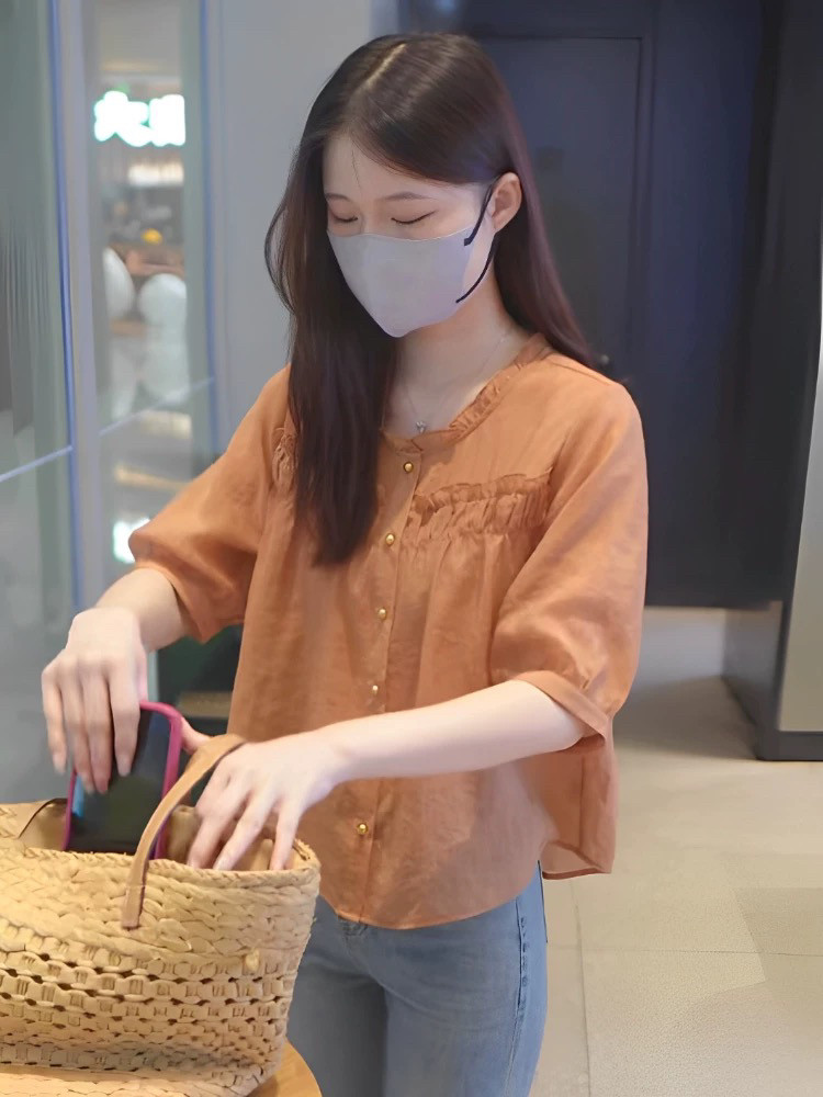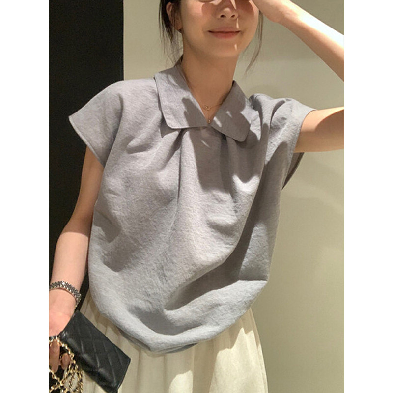 Áo sơ mi ngắn tay màu giản dị cho phụ nữ mùa hè 2025 Mô hình mới của Hàn Quốc bông giảm tuổi áo sơ mi lỏng lẻo hiển thị skinny top