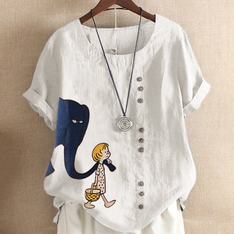 Thương mại nước ngoài pháp giảm tuổi hoạt hình in áo sơ mi mùa hè kích thước mỏng áo sơ mi ngắn tay áo