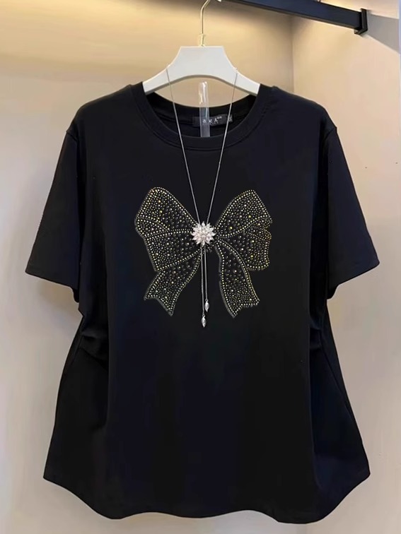 Kích thước lớn của phụ nữ thiết kế cổ chữ V cảm giác quần chúng ngắn tay áo t-shirt cho phụ nữ mùa hè 2025 phong cách mới phù hợp với quần áo ngắn