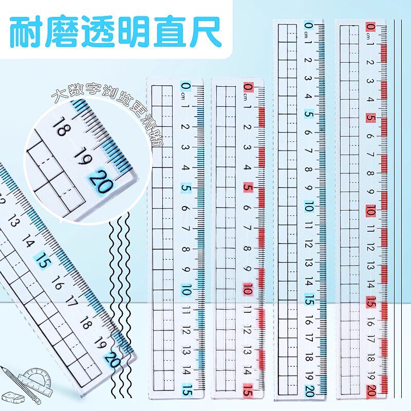 Thước đo chống cận thị với sóng thẳng học sinh 15 cm văn phòng phẩm 20cm trong suốt thước kẻ bản đồ