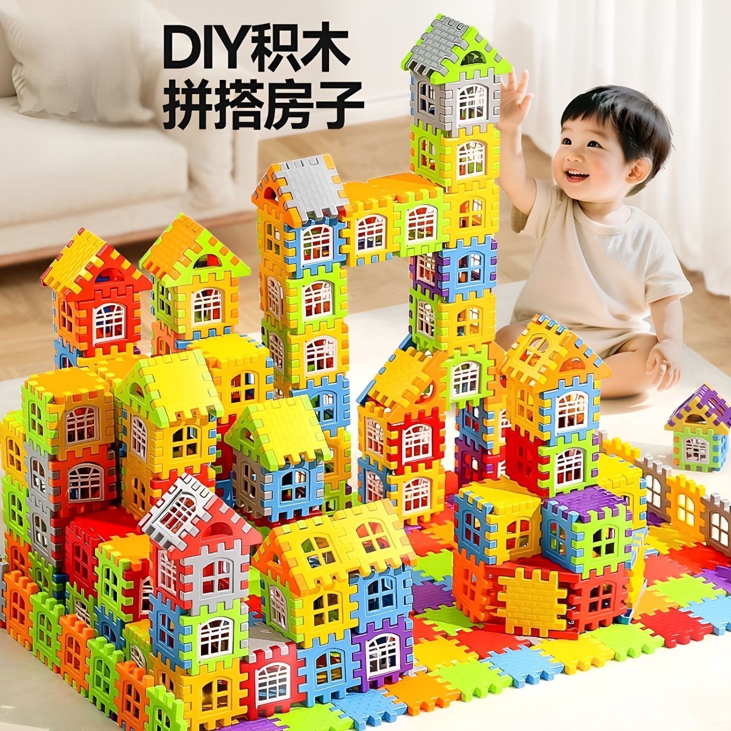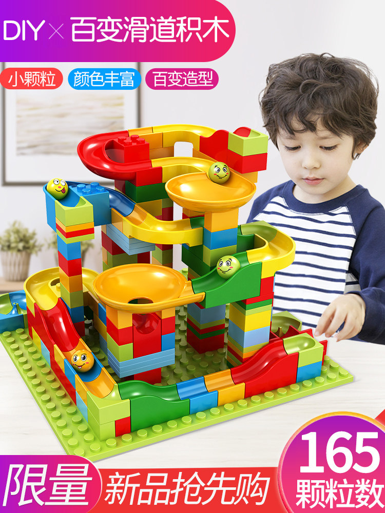 Khối xây dựng lớn cho trẻ em Đồ chơi ghép hình Câu đố cho trẻ em trai và phụ nữ Trẻ em 0 đến 3 tuổi 1-6 đường trượt 2 câu đố dạy sớm