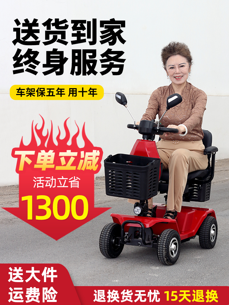 Xe bốn bánh điện mới cho gia đình Xe đi bộ nhỏ dành cho người già Đưa đón trẻ em đi lại Xe điện dành cho người già