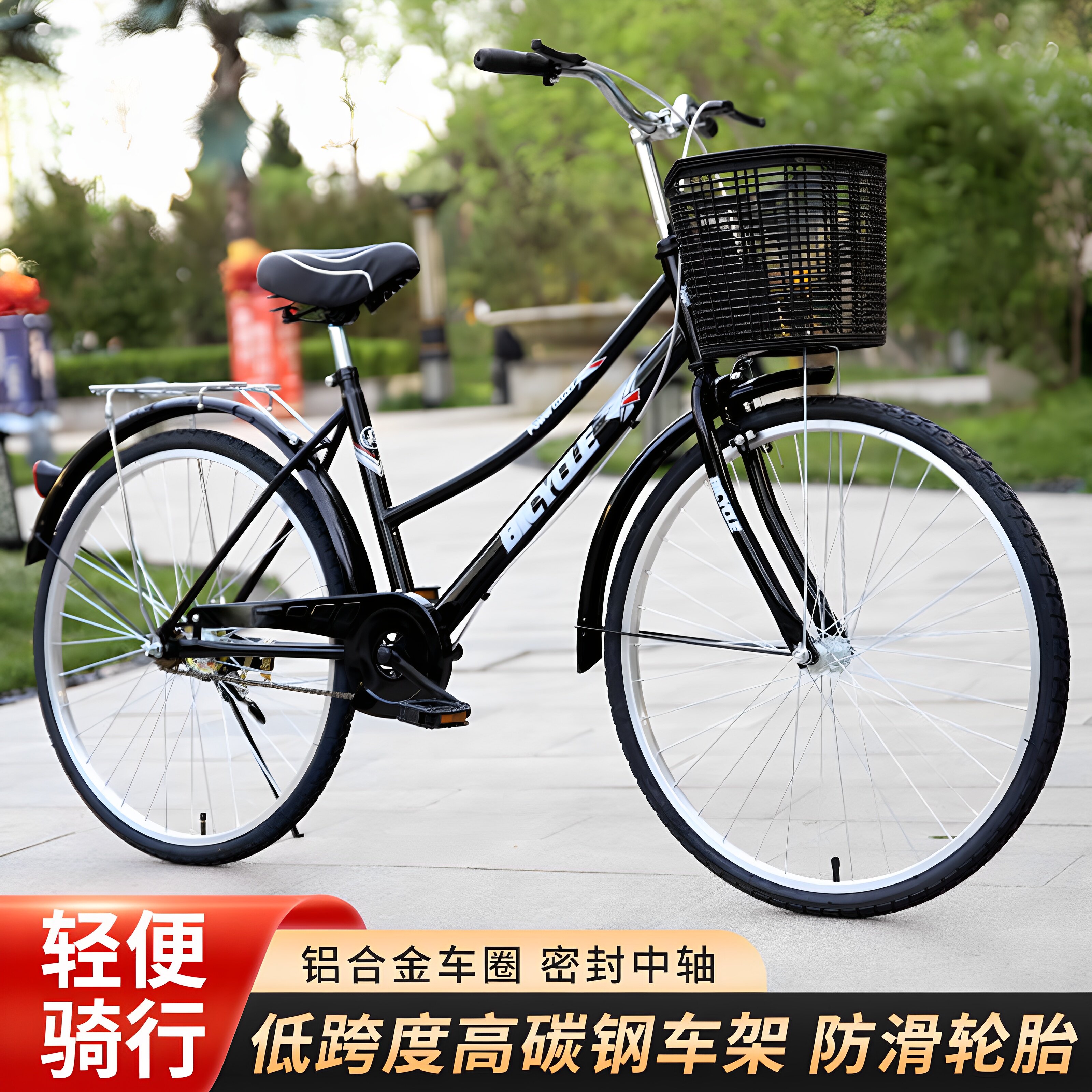 Xe đạp dành cho phụ nữ trưởng thành đi lại theo phong cách cổ xưa Trọng lượng nhẹ 24 inch 26 inch Lốp rắn dành cho nam và nữ Xe tay ga tiêu chuẩn dành cho sinh viên