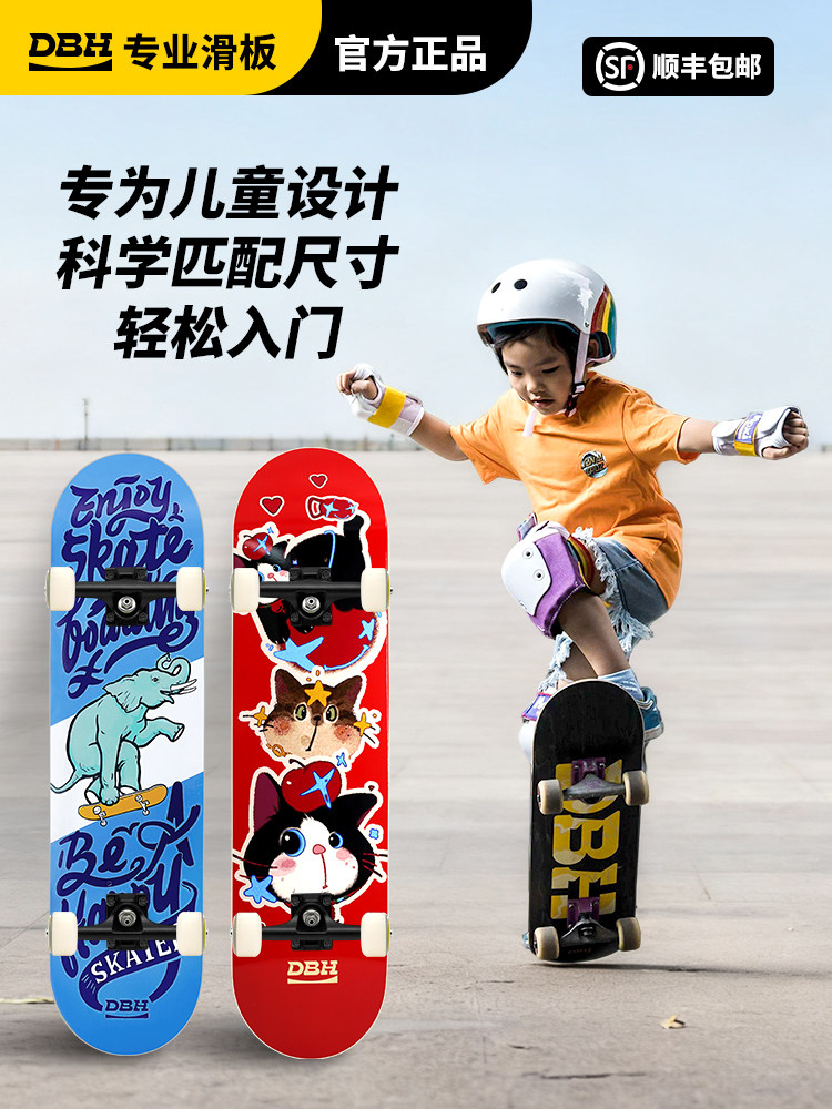 DBH Kids Skateboard Professional Ban cho người mới bắt đầu Nam và nữ sinh Scooter 2-6-12 tuổi Bốn bánh xe đôi Rocker Teen