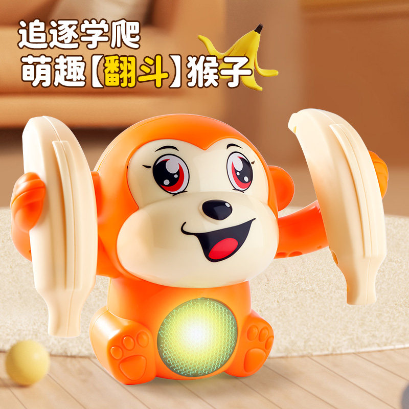Trẻ em Tumble Monkey Điều khiển bằng giọng nói bằng điện hát phát sáng sẽ lật nhào nhào lộn Em bé tập thể dục đầu bò đồ chơi