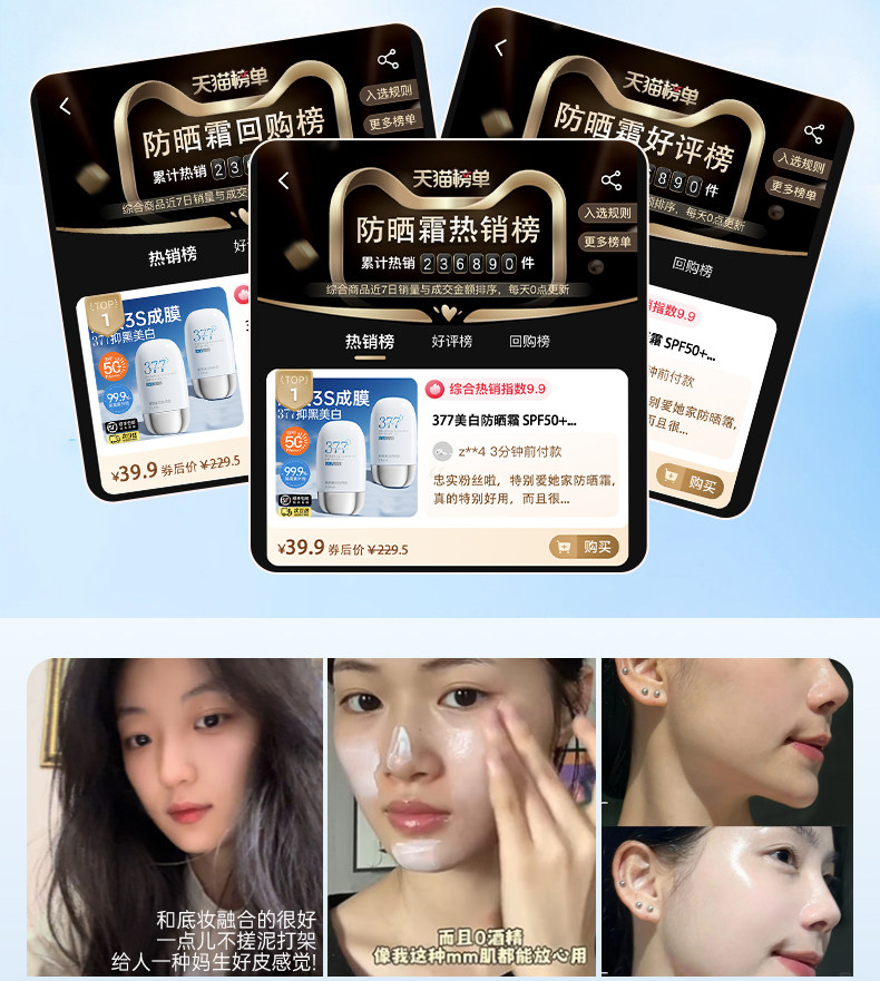 377 kem chống nắng dành riêng cho khuôn mặt của phụ nữ và nam giới 50 lần lần kem chống uv sữa chính thức flagship