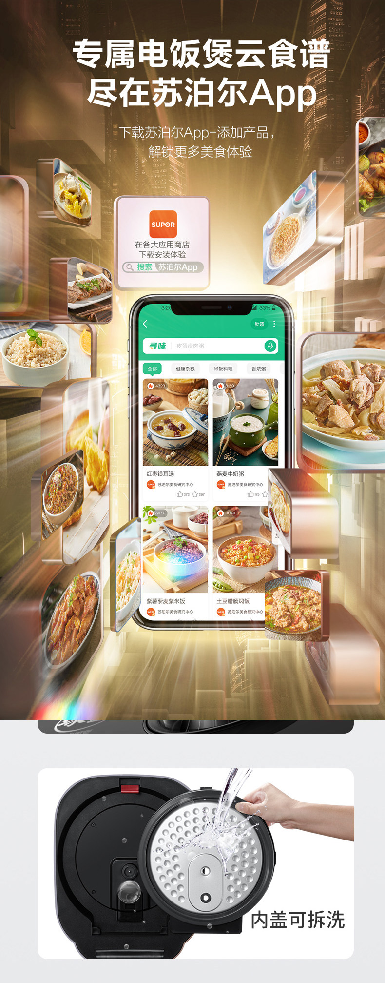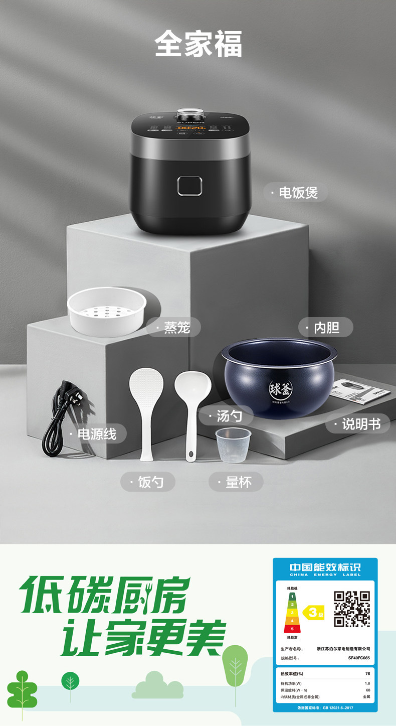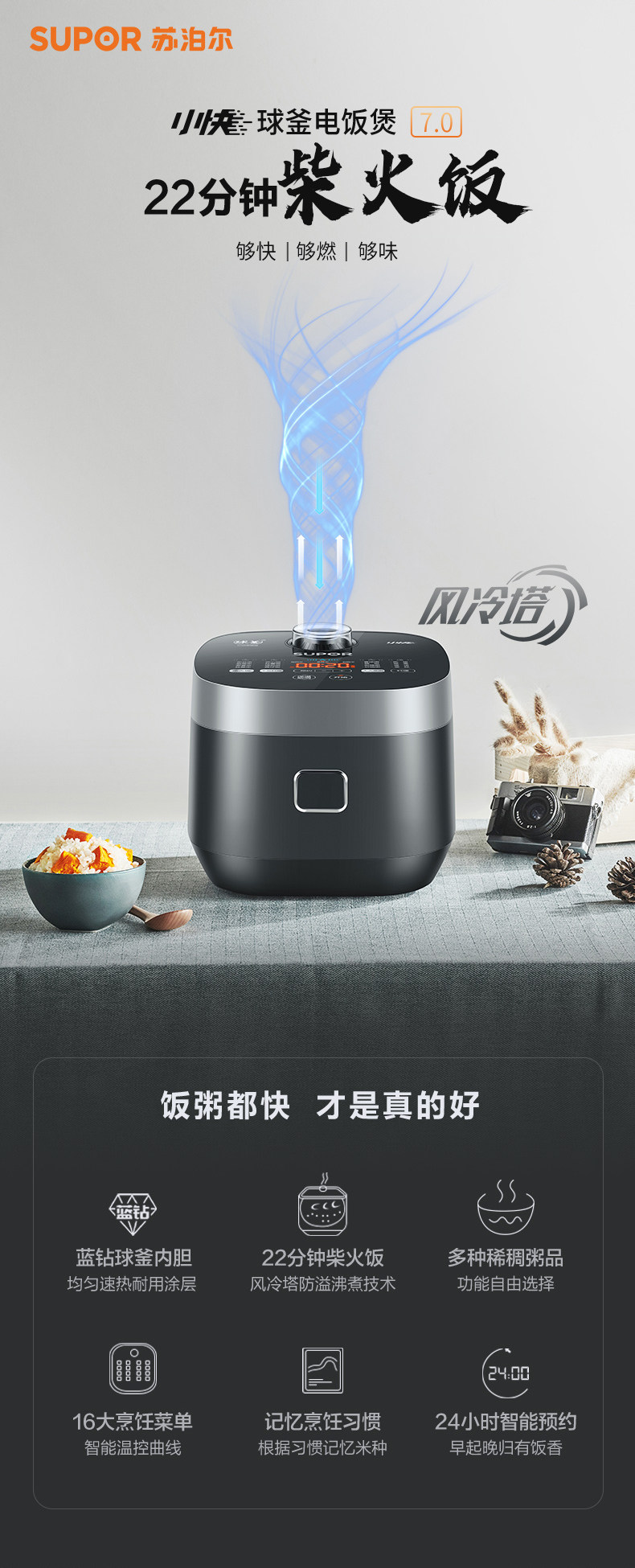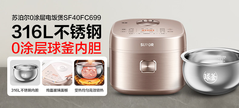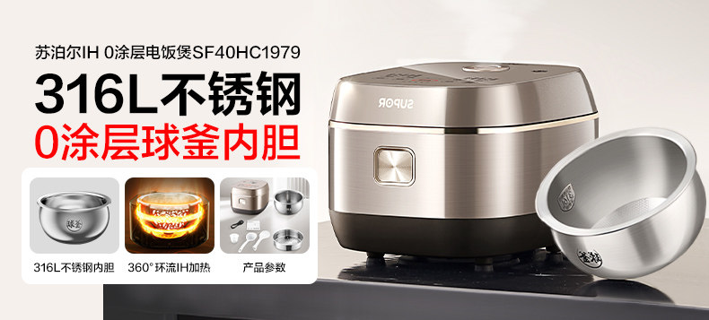 Nồi cơm điện với lò sưởi bóng chày nhỏ ở supor