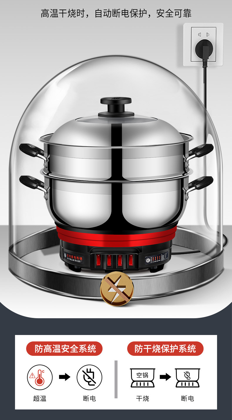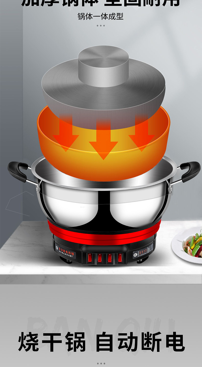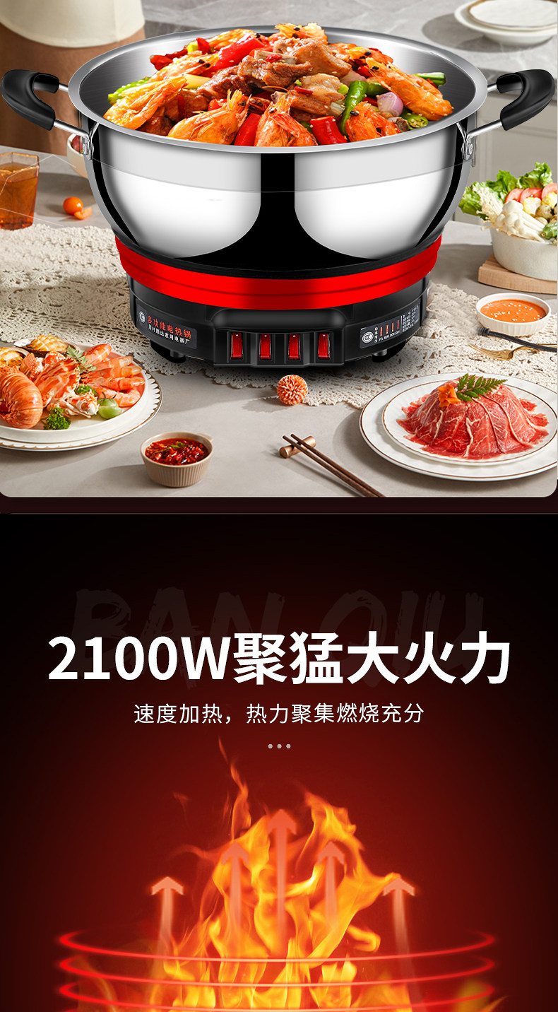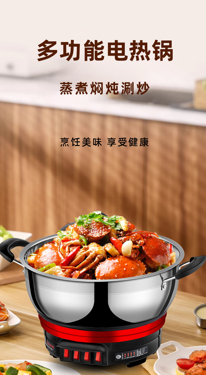 Yangzi Electric Heat Pan đa chức năng Trang chủ điện xào rau xào chảo Một trong những công suất lớn bằng thép không gỉ điện nồi hấp hầm lẩu