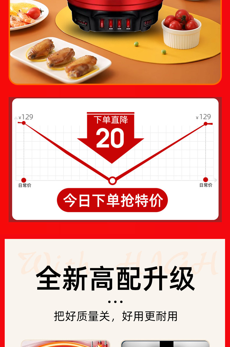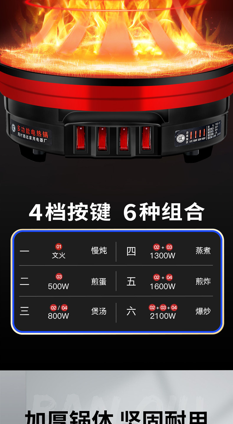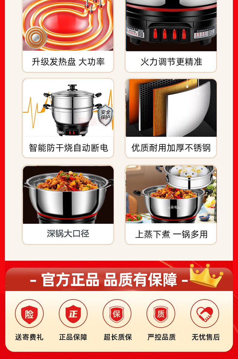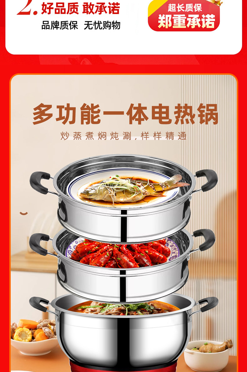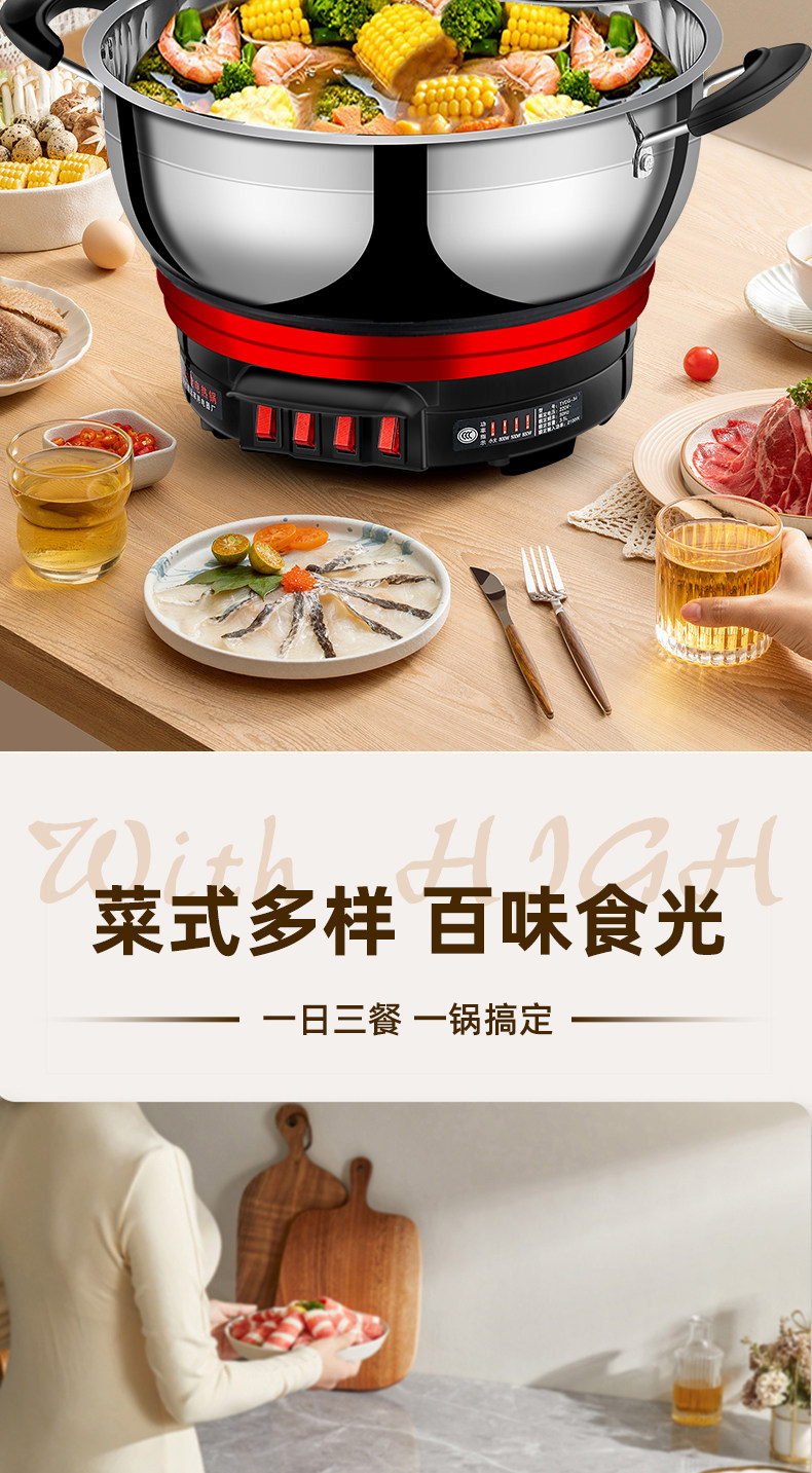 Yangzi Electric Heat Pan đa chức năng Trang chủ điện xào rau xào chảo Một trong những công suất lớn bằng thép không gỉ điện nồi hấp hầm lẩu