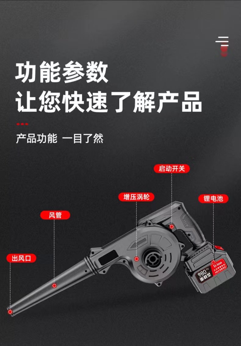 Đức công suất cao công nghiệp Lithium Electric Blower Máy sấy tóc có thể sạc lại Máy thổi bụi xe hơi nhỏ Máy thổi bụi gia đình