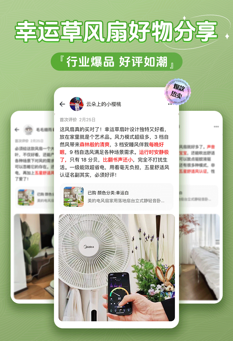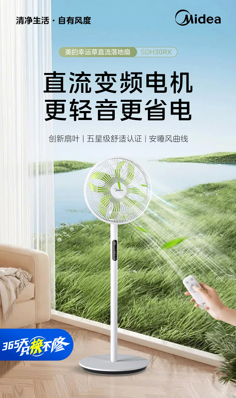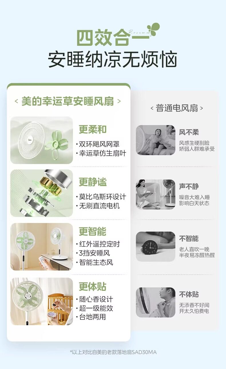 Quạt điện gia dụng, quạt sàn, tần số tĩnh, cỏ may mắn, ngủ yên, hiệu quả năng lượng cấp 1, 25 mẫu mới.