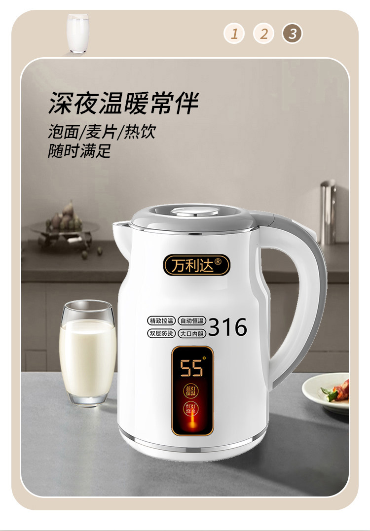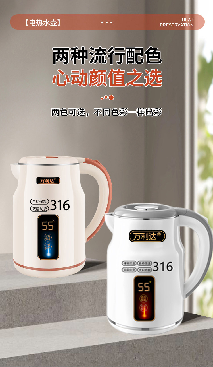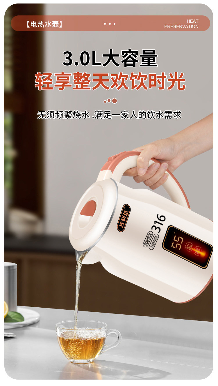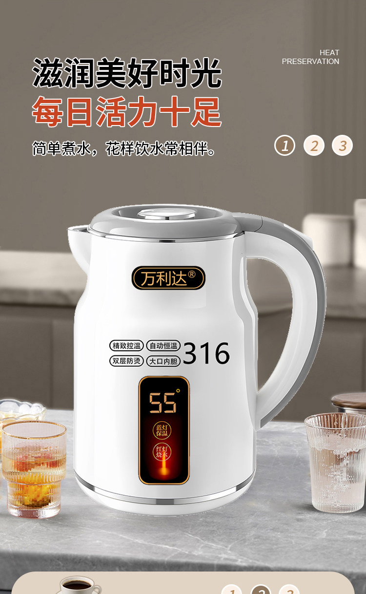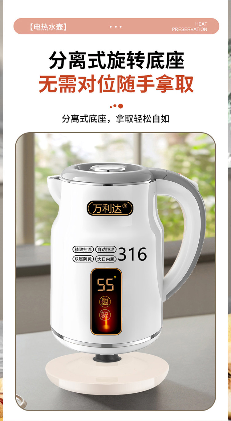 Wanlida ấm đun nước 316 thép không gỉ 3.0L khối lượng lớn nhiệt trong nhà nhiệt độ thông minh trong một ngày ấm đun nước