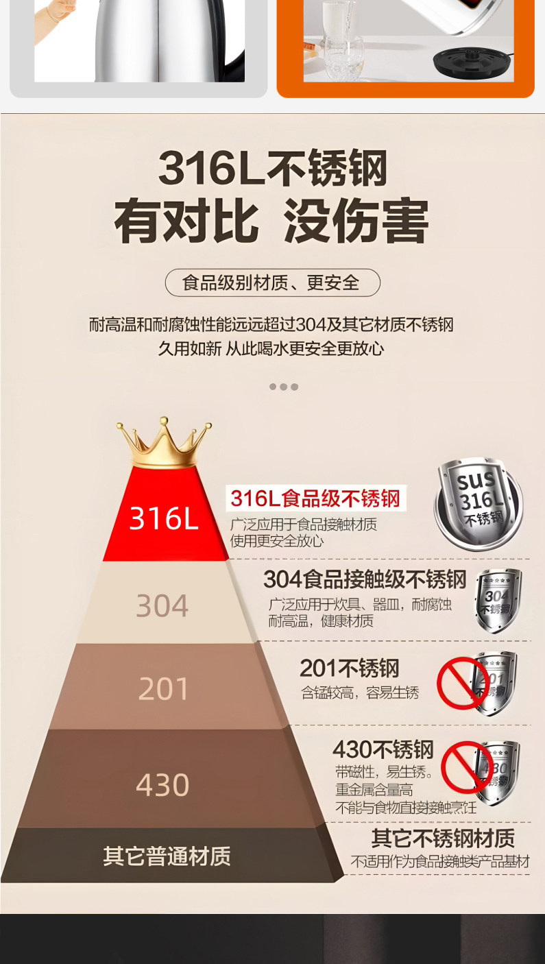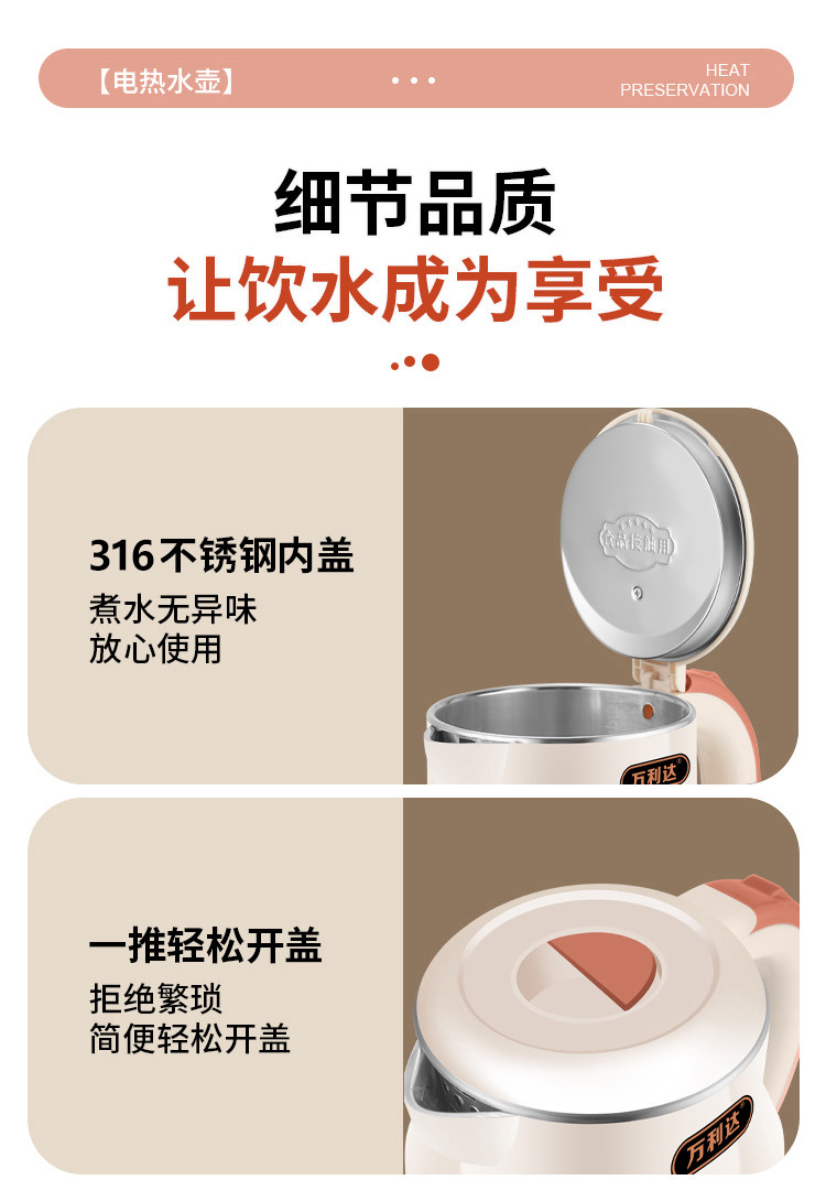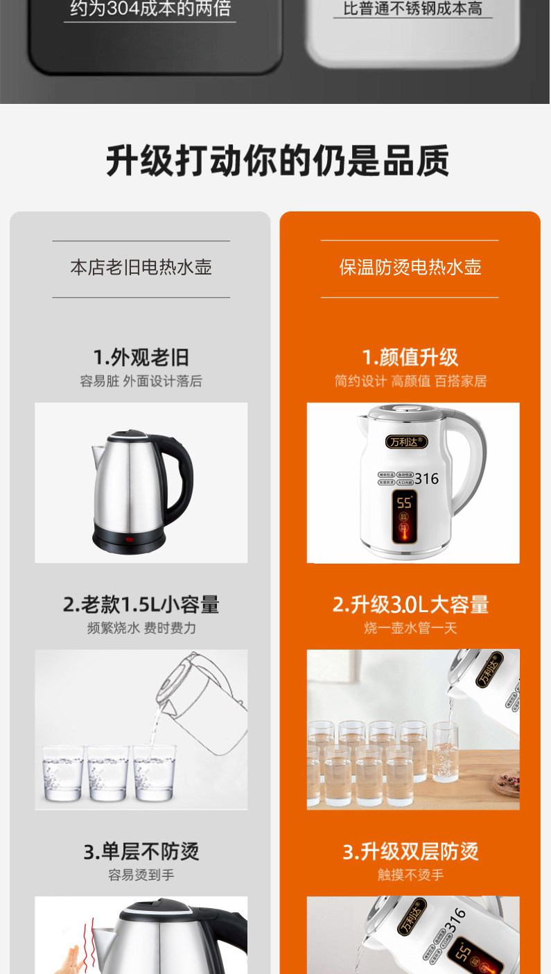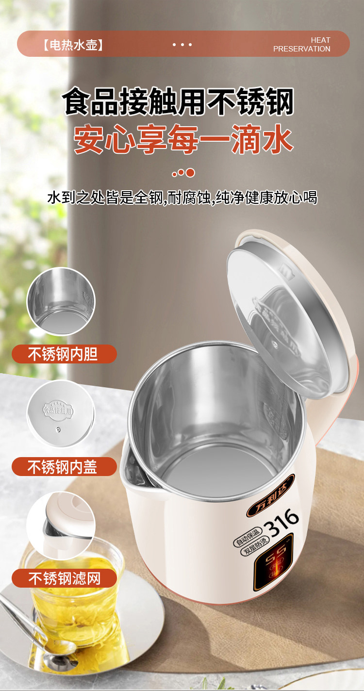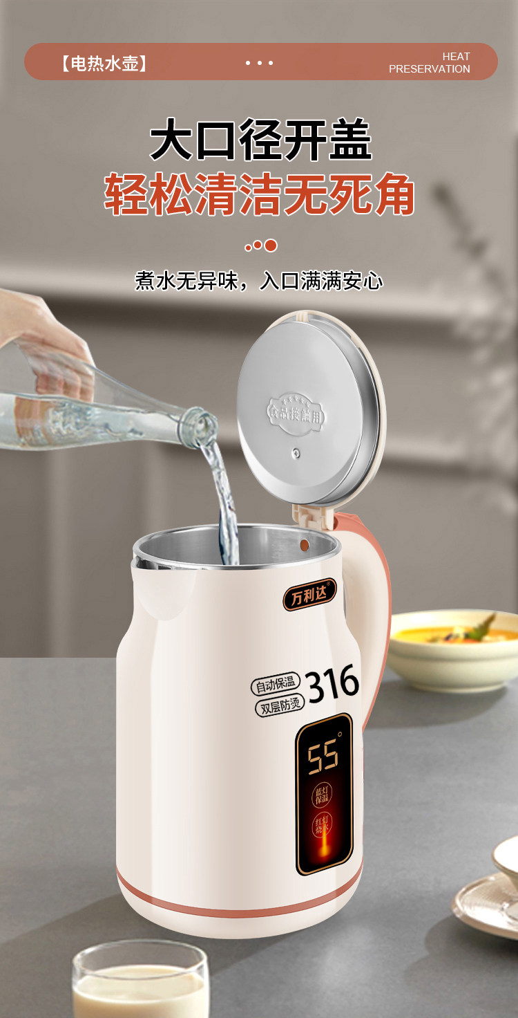 Wanlida ấm đun nước 316 thép không gỉ 3.0L khối lượng lớn nhiệt trong nhà nhiệt độ thông minh trong một ngày ấm đun nước