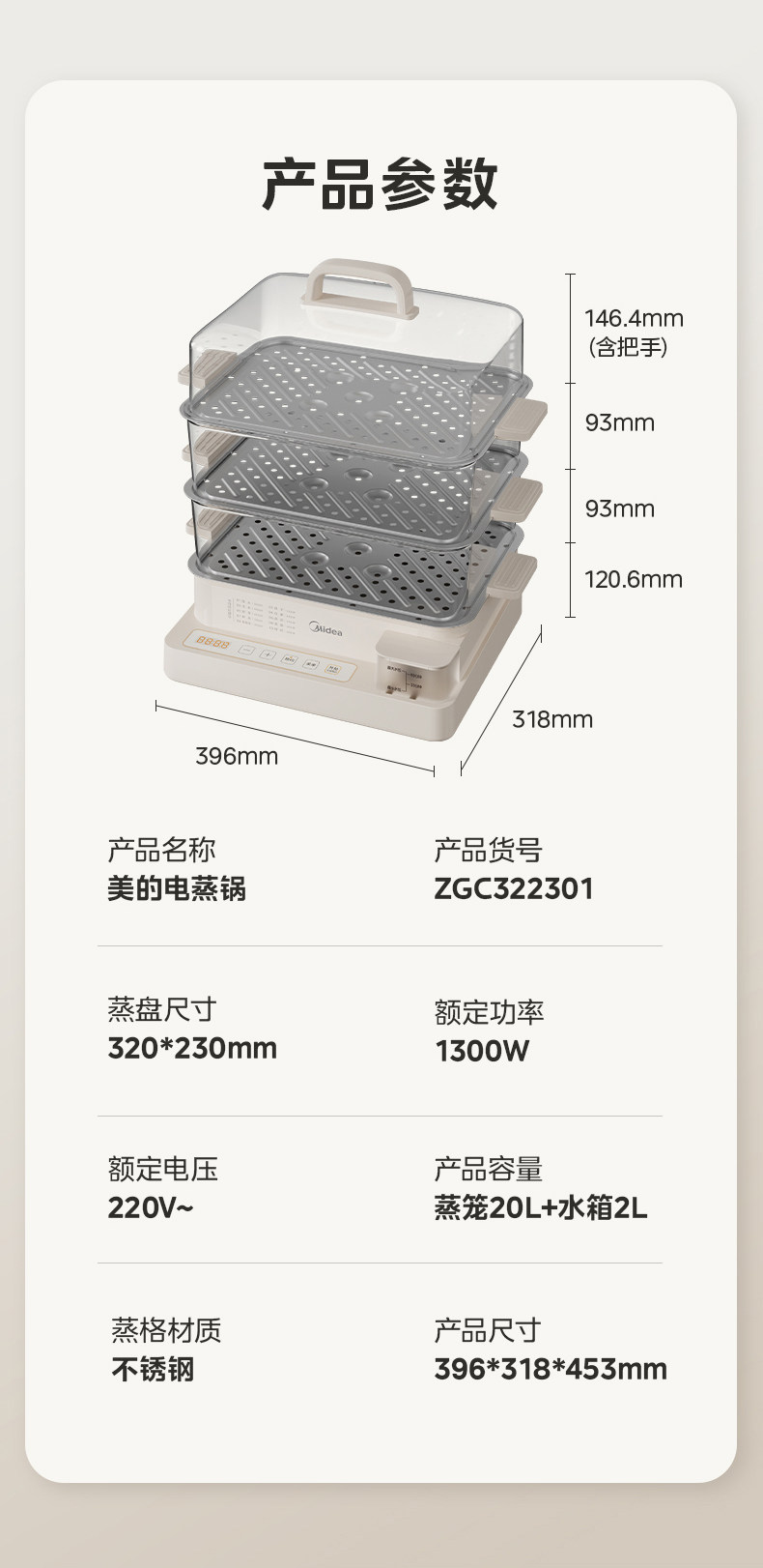 Midea nồi hơi hơi nước đa chức năng gia đình ba lớp và nhiều lớp steaming nồi hơi hơi nước khối lượng lớn hộp chính thức flagship chính hãng