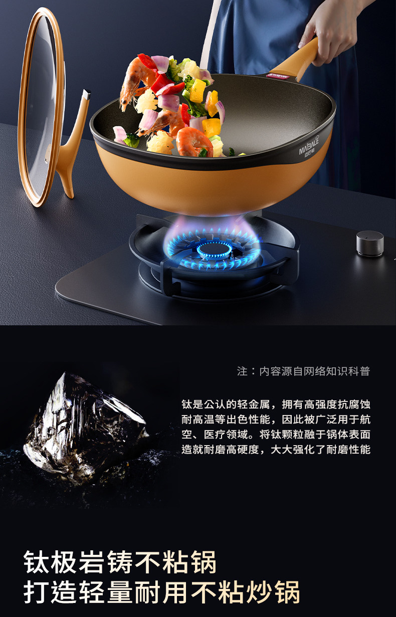 Mayballer không dính chảo Cửa hàng hàng đầu chính thức Titan đá đúc chảo bếp gas chính hãng Lò điện từ gia đình