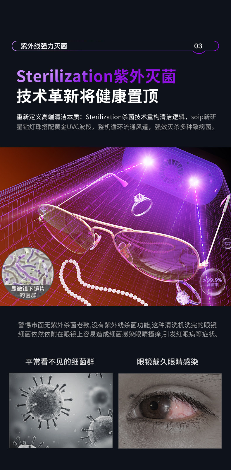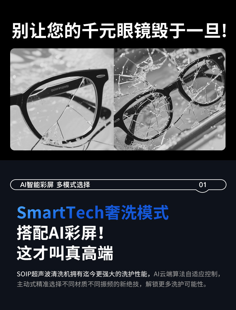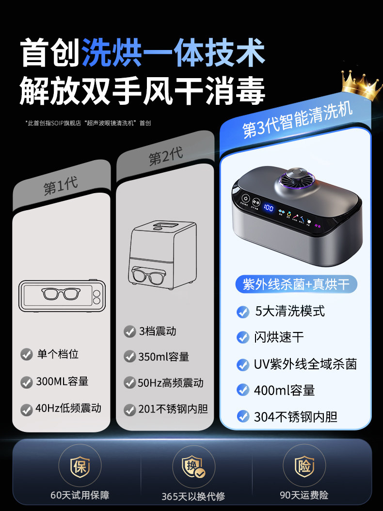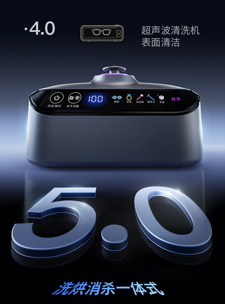 [Rửa và sấy tất cả trong một] Máy rửa kính siêu âm Máy làm sạch kính gia đình Trang sức Niềng răng Máy làm sạch tự động