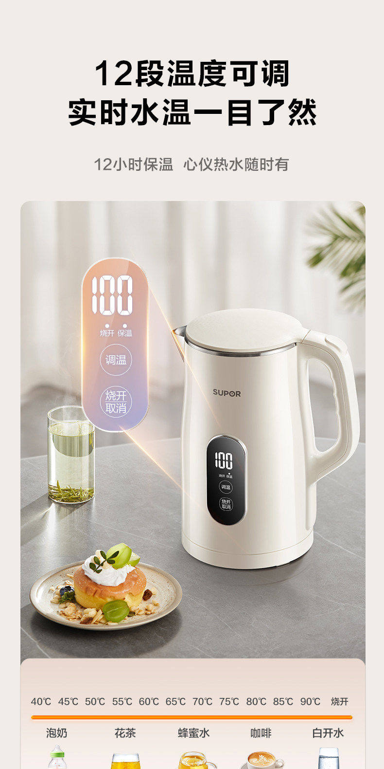 Ấm đun nước điện Supour giữ ấm cho gia đình Tất cả trong một Nhiệt độ không đổi Thông minh 316L Thép không gỉ Ấm đun nước điện 2026 Mới