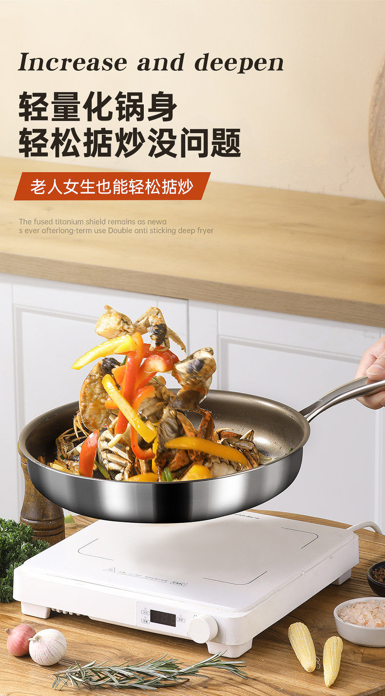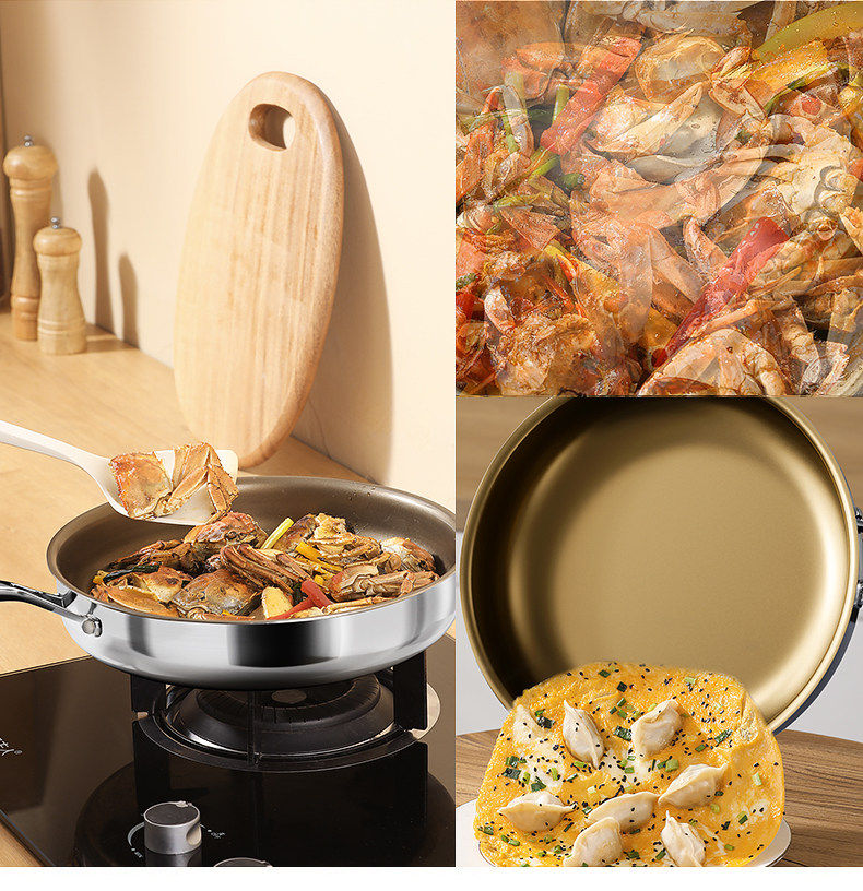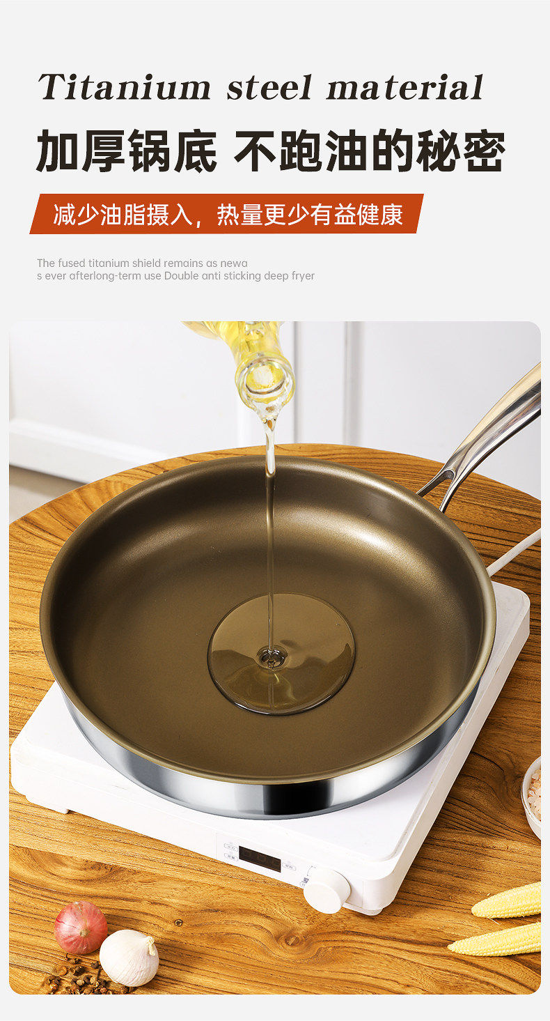 Titan không tráng thép không gỉ Pan Non-Sticky Pan Trang chủ xào rau Pan Steak Frying Pan Lò điện từ Bếp gas đặc biệt