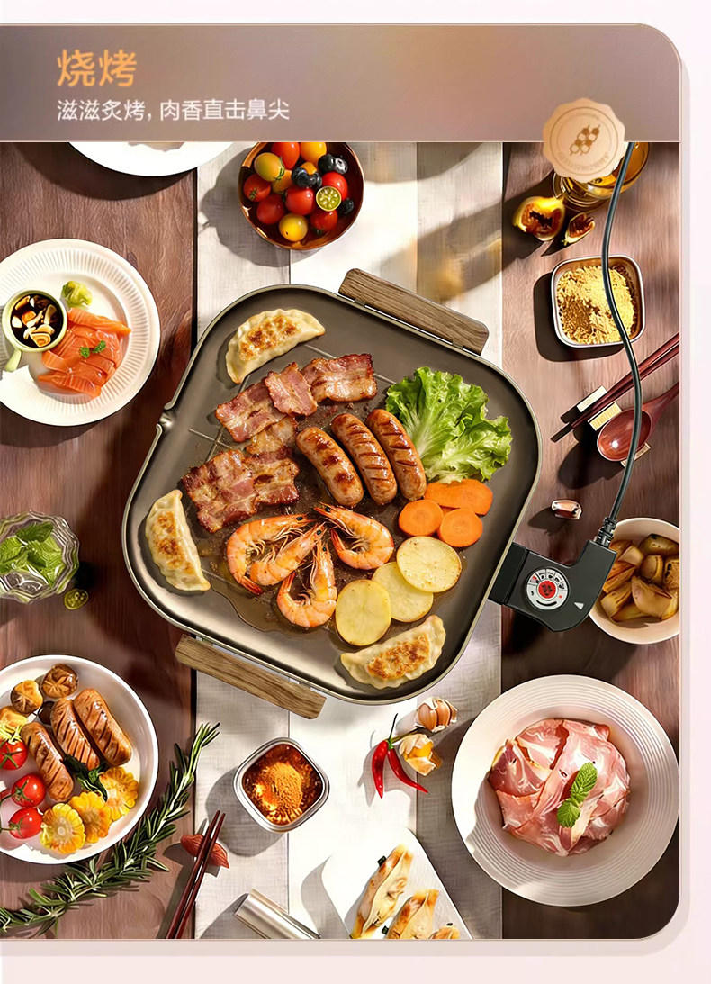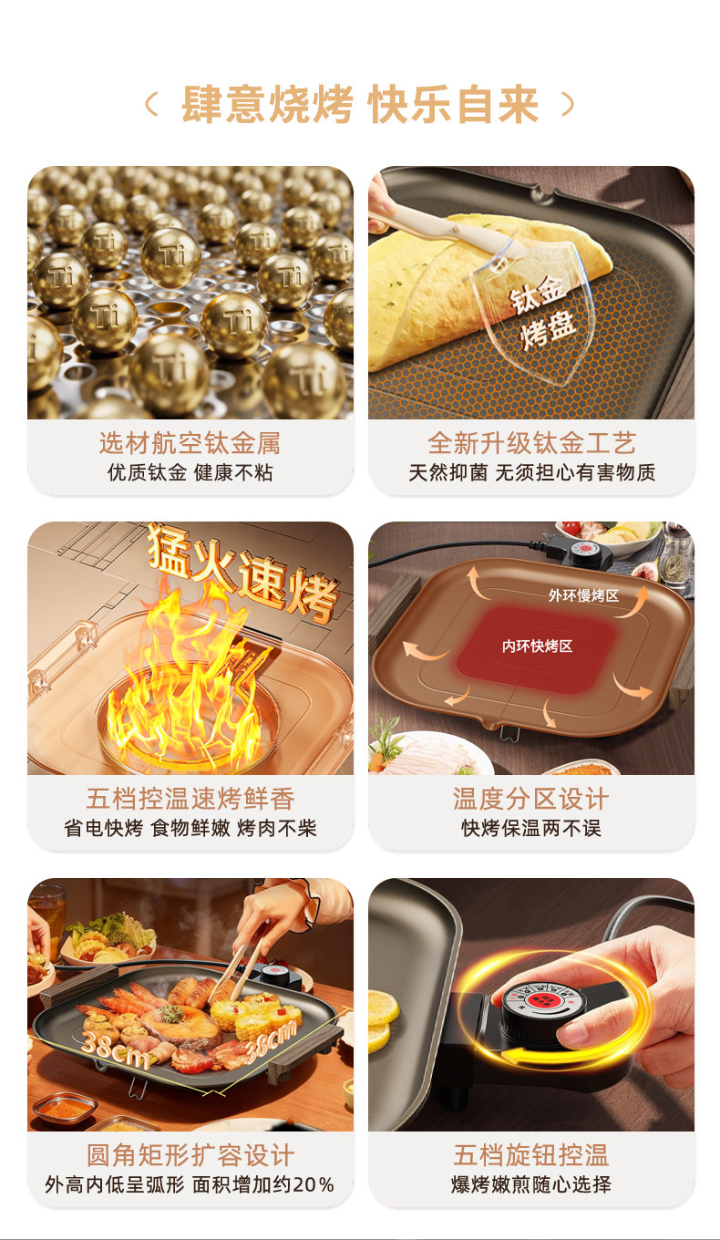 Yiyalu Titanium Golden Electric Grill Pan Trang chủ BBQ Pan Trang chủ đặc biệt BBQ Pan Hàn Quốc đa chức năng không khói BBQ