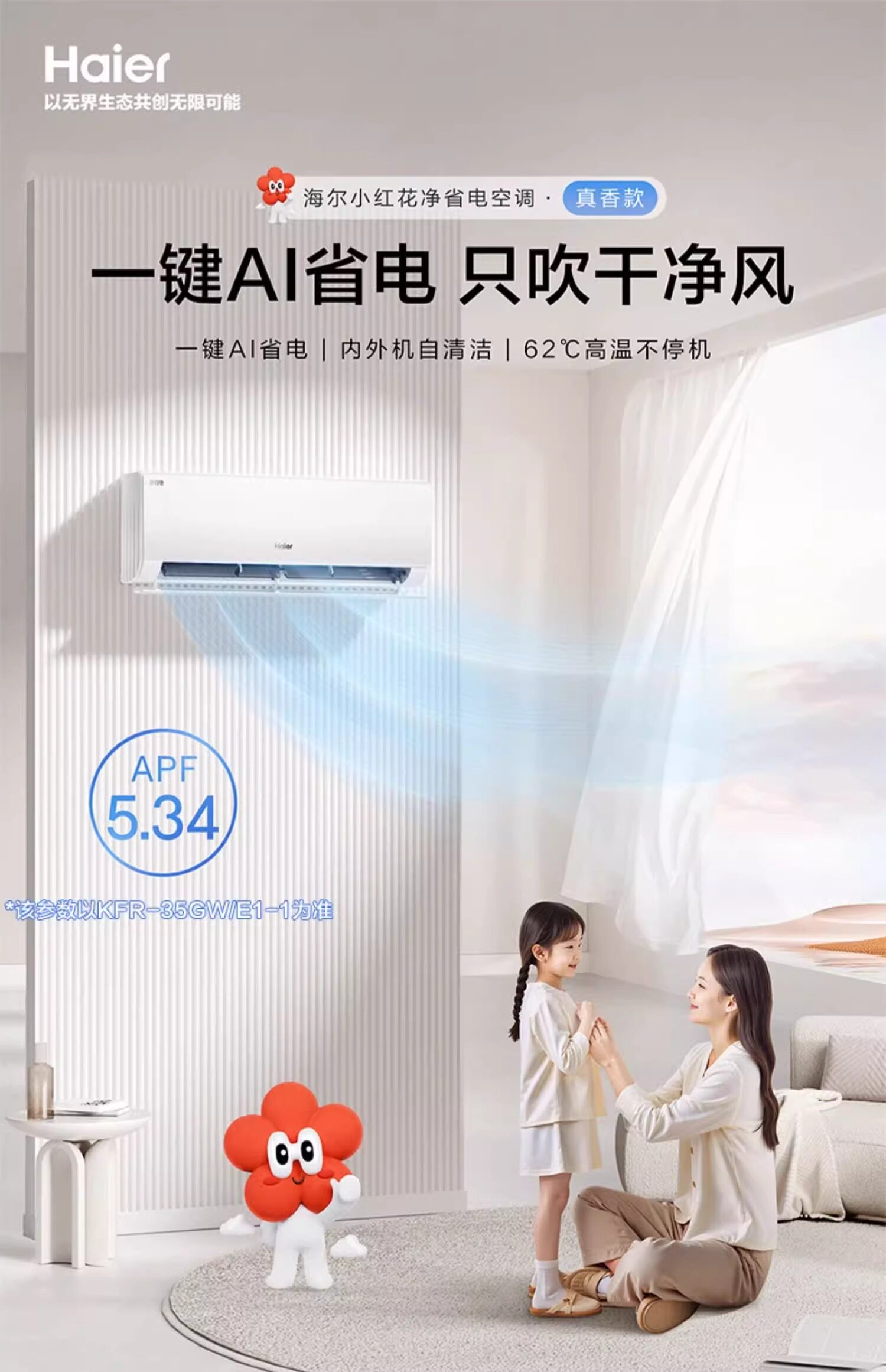 Haier nhỏ màu đỏ máy lạnh tiết kiệm năng lượng chính thức mới hiệu quả năng lượng mới 1, 5 bộ điều hòa nhiệt độ và nhiệt độ trong nhà