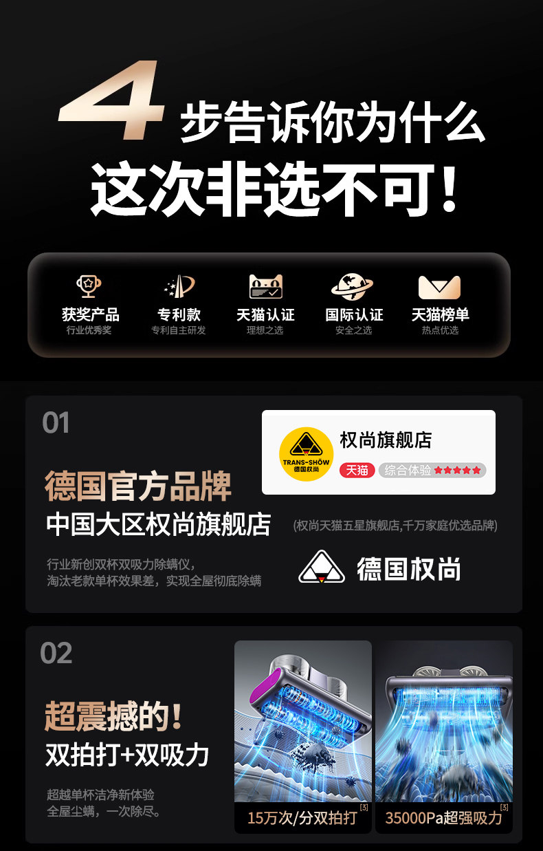 [German Kwon Shang] Dụng cụ khử trùng ve trên giường Máy hút bụi gia đình Máy tiệt trùng UV Dây không dây chính thức